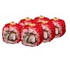 рис,нори , лосось темпура, огурец, сыр творожный,стружка тунца,соус спайси